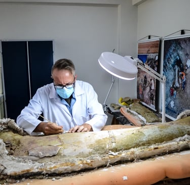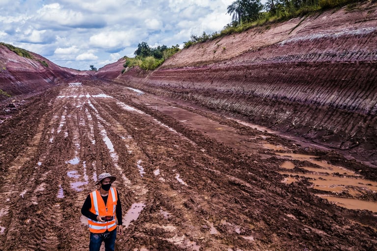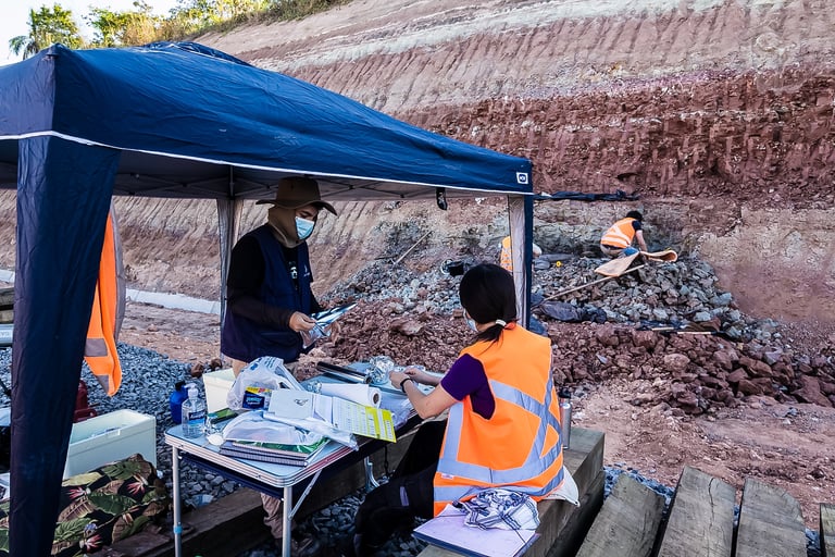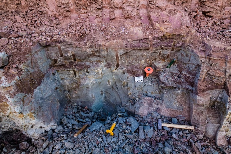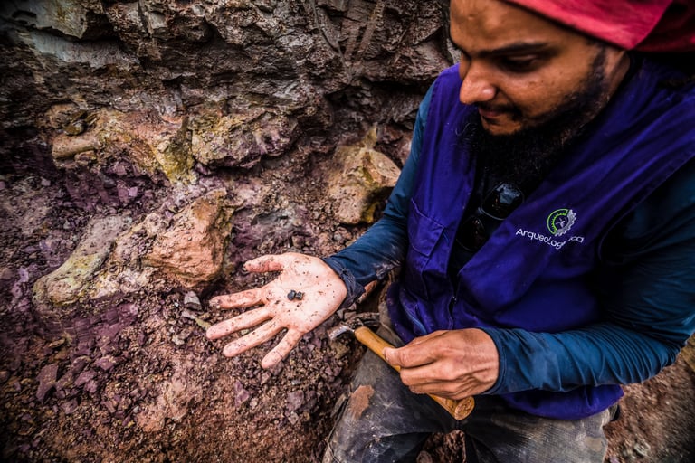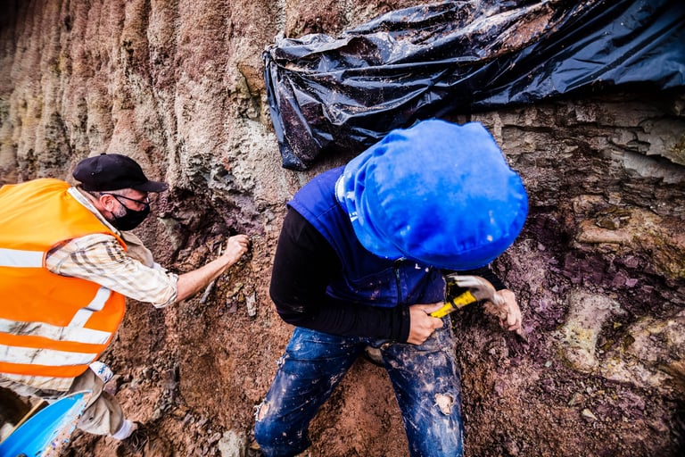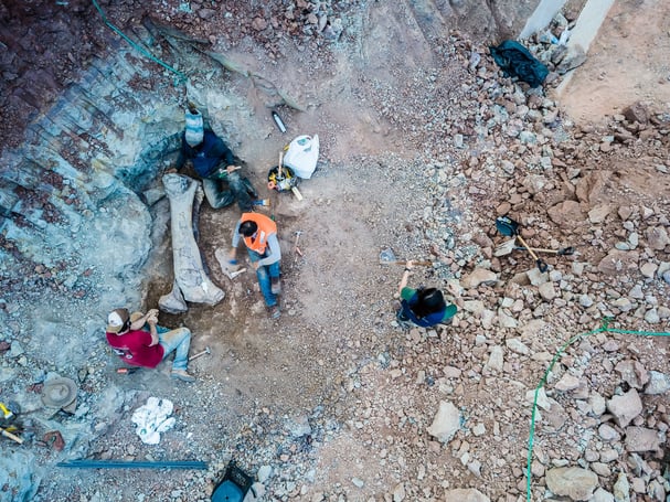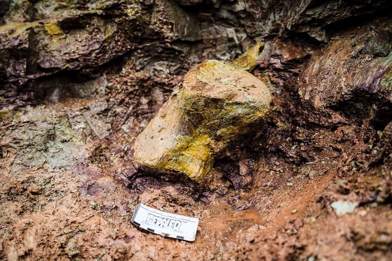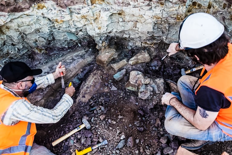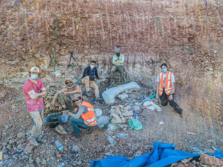 Em abril de 2021, a convite da Master Ambiental, seguimos para Davinópolis, Maranhão, e registramos uma escavação paleontológica surpreendente. Durante as obras do Terminal Ferroviário da Brado, o arqueólogo em campo identificou um osso como fóssil – inicialmente, a hipótese era de uma Preguiça Gigante, um animal da megafauna. Mas, à medida que a escavação avançava, os ossos, cada vez maiores, revelavam que o animal era muito maior. O geólogo em campo confirmou: estávamos diante de relíquias do período Cretáceo, há mais de 100 milhões de anos, comprovando a descoberta de um dinossauro.